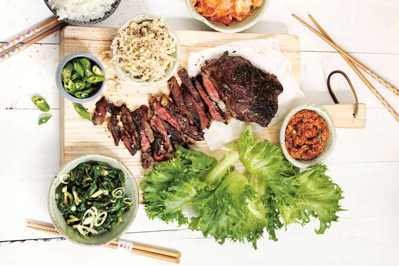 Koreansk BBQ är färggrann, smakrik, varierande och hälsosam. Bland annat äter du grillat kött i tunna skivor inslagna i olika salladsblad tillsammans med dippsåser. Förmågan att variera tillagningen av grönsaker, kött, fisk och skaldjur är imponerande. Receptet är hämtat ur Mästerkocken 2013 Jennie Walldéns kokbok ”Asiatiska Smaker”.