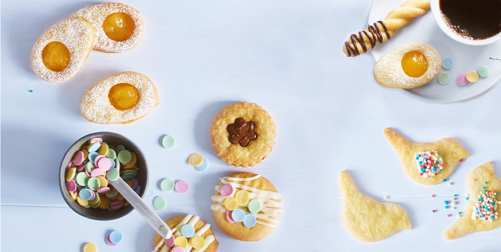 Baka påskens finaste kakor med härliga toppingar. Du kan använda samma grunddeg och göra snygga kreationer med hjälp av Nutella, lemon curd och strössel i påskens färger!