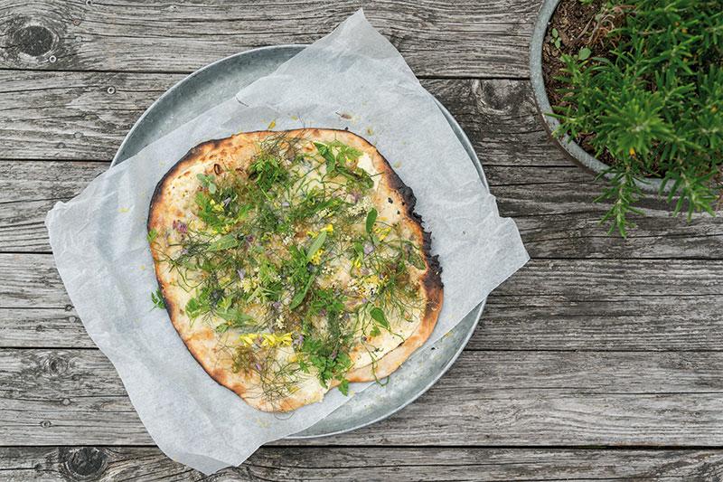 Vill du göra lika god pizza som Lisa Lemke? Här är ett recept från hennes rosade pizzeria Prostens Pizza. Det är ett vegetariskt recept med två olika ostar och en mängd färska trädgårdsörter.