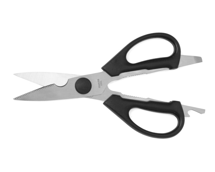Multifunktionell kökssax från BBM som med enkelhet klipper även tjockare material. Saxen har en insänkning för fågelben, grepp för skruvkork, bändblad för exempelvis burklock och kapsylöppnare. Ett riktigt klipp!
