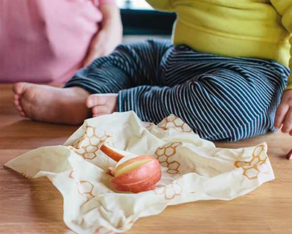 Bee’s Wrap är en speciell, miljövänlig och ekologisk livsmedelsförpackning. När den värms i händerna kan den formas. Du får ett ekologisk matomslag som är ytbehandlad med bivax,