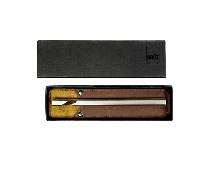 Kapsylöppnare som skulle kunna komma från en insexnyckel – smart & läcker! Kommer i ett snyggt fodral av buffelskinn.