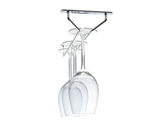 Hahn glashängare 1 spår rymmer upp till 4 st vinglas med själk. Glashängaren fästs i tak eller under köksskåp och frigör utrymme samtidigt som du elegant visar upp dina bästa vinglas.