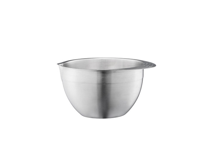 Heirol Pro Series skålen är tillverkad i rostfritt stål. Handtaget på skålens kant garanterar ett stabilt grepp när du använder den. Mätskala inuti skålen.