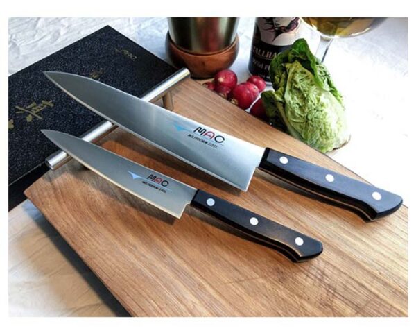 Macknivarnas egenskaper tilltalar såväl kräsna proffs som medvetna hemmakockar. Den unika och speciella designen har uppmärksammats med en mängd fina utmärkelser runtom i världen och är naturligtvis patenterad. Slipvinkeln är endast 15 grader. Det gör att eggen blir tunnare och vassare än på traditionellt slipade knivar. Materialet är japanskt härdat stål av högsta kvalitet, vilket gör att skärpan håller länge.