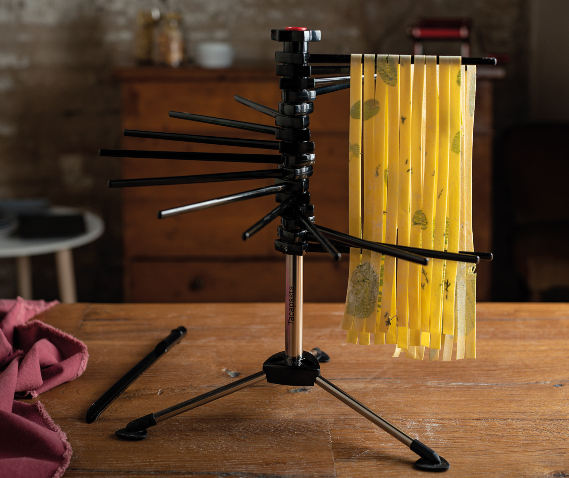 Med denna smidiga och ihopfällbara torkställning från Marcato torkar du enkelt din hemgjorda pasta utan kladd.