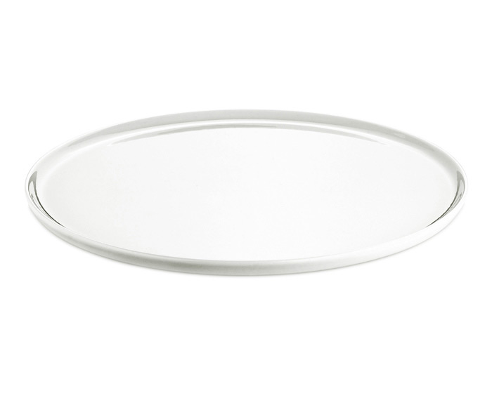 Helt flat pizzatallrik med liten upphöjd kant. Passar också utmärkt som tårt- eller serveringsfat.
