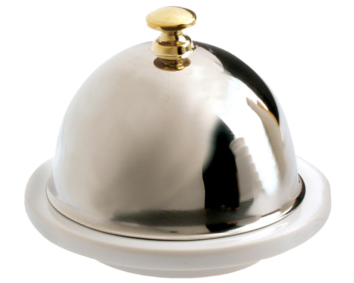 Riktigt snyggt och elegant smörfat från Revol med lock av rostfritt stål samt guldfärgad knopp.