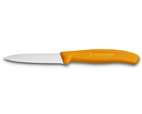 Skalkniv med träskaft i olivträ i ett mindre format.
