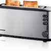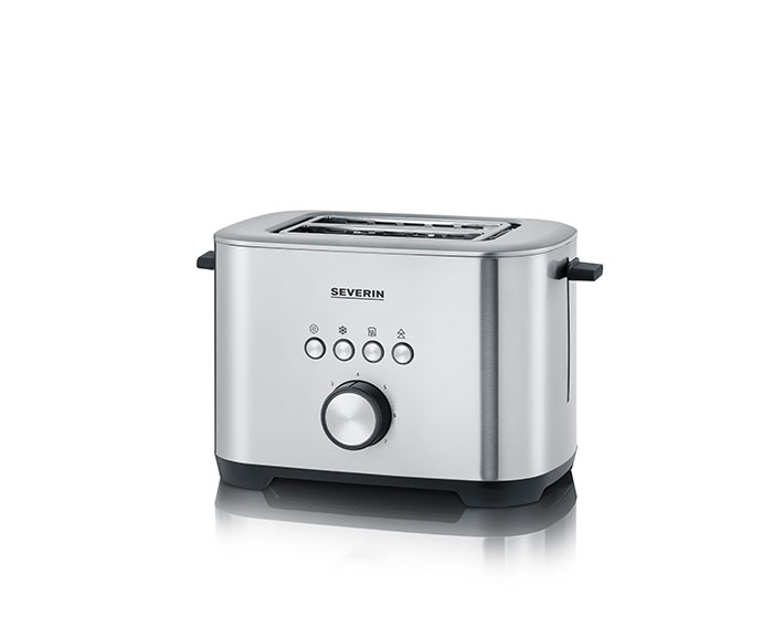 Brödrost i Severins unika design med plats för 2-skivor. De extra breda rostfacken gör det möjligt att rosta bredare skivor som t.ex limpa eller bagel. Brödrosten har smarta funktioner som kalla sidor och smulfack. Den här modellen är även utrustad med avfrostningsfunktion, uppvärmningsfunktion och möjligheten att värma bröd på den integrerade ställningen.