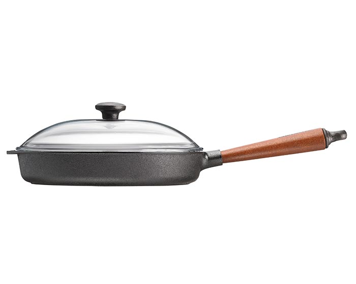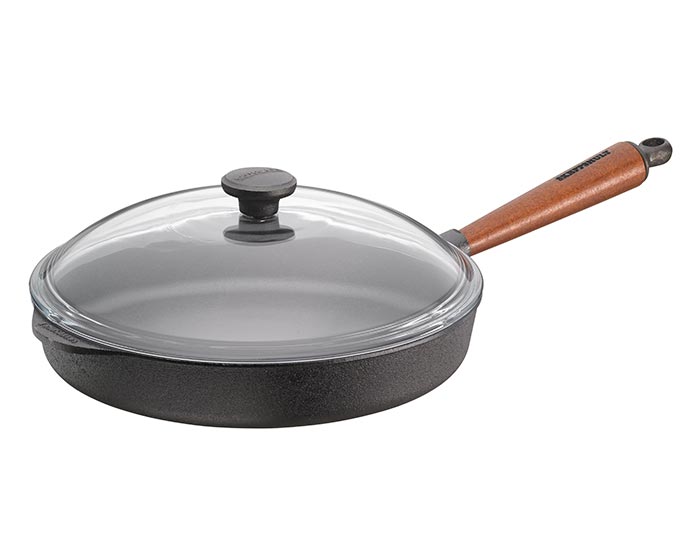 Gedigen traktörpanna med glaslock från Skeppshults serie Traditional. Traktörpannan har höga kanter och passar utmärkt när du vill ha en bra stekyta. Traktörpannan är ett perfekt redskap att använda när du ska göra krämiga såser eller utsökta grytor. Det medföljande locket gör att du slipper stänk under matlagningen och maten blir extra saftig och smakrik! Skeppshults traktörpanna Traditional har ett vackert handtag av brunbetsad bok som ej blir varmt när du tillagar maten. Den 5 mm tjocka bottnen sprider jämn värme för att du ska få till den ultimata stekytan.
