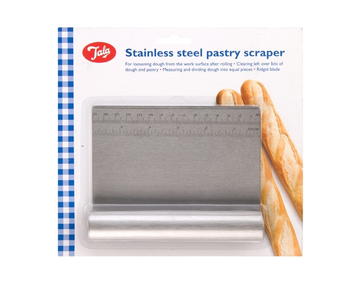 För mätning och delning av degar. Fungerar utmärkt för att lossa deg från arbetsytan efter kavlingen.